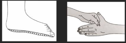 - एक्यूप्रेशर – नीचे दिए गए चित्र में दिखाए गए सभी बिंदुओं को दबाएं। प्रत्येक बिंदु को 1-2 मिनट के लिए दबाएं।