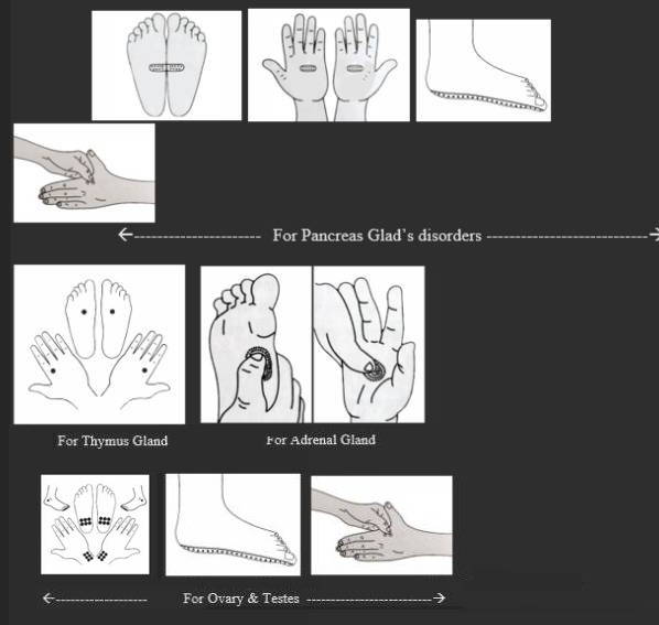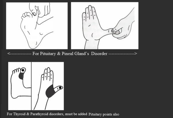 एक्यूप्रेशर : स्त्राव बढ़ाने के लिए दिए गए बिंदुओं पर दक्षिणावर्त (क्लॉक वाइज) दबाव दें और स्त्राव कम करने के लिए वामार्वत (एंटी क्लॉक वाइज) दबाव दें।